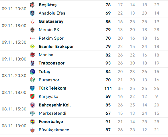 • Trevion Williams (Bahçeşehir Koleji): 12 sayı, 11 ribaund, 7 asist, 26 vp